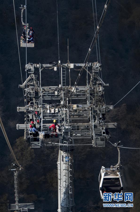 華山太華索道維修人員對索道支架及鋼絲繩進行檢測(12月6日攝)。新華社記者陶明攝