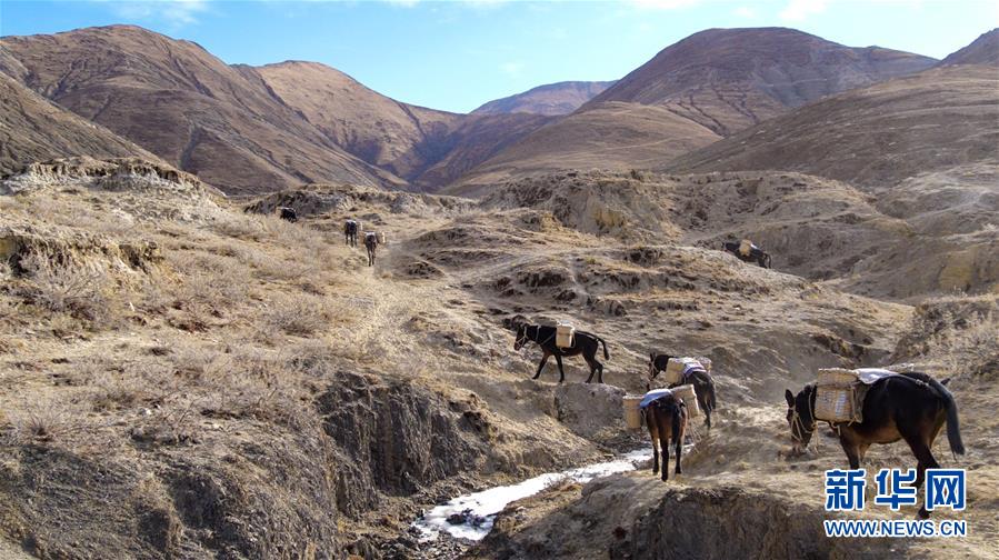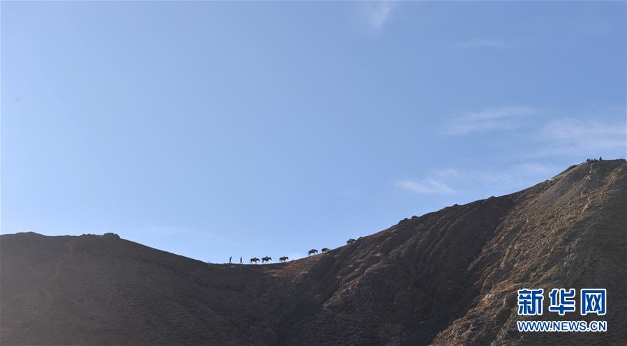 12月6日,騾馬隊馱負工程物料前往山頂塔基施工現(xiàn)場。新華社記者侯捷攝