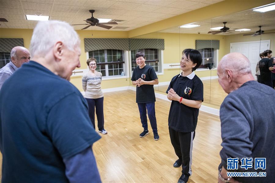 陳思坦的夫人林旭在位于美國(guó)紐約長(zhǎng)島的一所社區(qū)老年活動(dòng)中心指導(dǎo)老人練習(xí)太極(11月20日攝)。這里是陳思坦夫婦開設(shè)的一個(gè)公益教學(xué)項(xiàng)目。11月的紐約已進(jìn)入初冬,位于美國(guó)紐約長(zhǎng)島的思坦太極武術(shù)中心依然一片紅火景象,學(xué)員們從5歲的孩童到80多歲的老人,操練著太極拳、太極劍、長(zhǎng)拳等武術(shù)招式。這里的主人陳思坦、林旭夫婦,也從早忙到晚,精心指導(dǎo)每一位學(xué)員的一招一式。6歲習(xí)武,22歲成為中國(guó)全國(guó)冠軍,26歲獲得首個(gè)世界冠軍……直到30歲退役,陳思坦在運(yùn)動(dòng)員生涯中曾獲得過32次國(guó)內(nèi)外各類武術(shù)大賽冠軍。36歲那年,懷著以太極拳和中國(guó)武術(shù)為媒介向世界推廣中國(guó)文化的夢(mèng)想,陳思坦到美國(guó)紐約尋找新的舞臺(tái)。經(jīng)過十多年的艱苦打拼,陳思坦夫婦目前在紐約長(zhǎng)島、法拉盛和曼哈頓都開設(shè)了長(zhǎng)期的課程,思坦太極注冊(cè)在編的各個(gè)年齡段的學(xué)員近千人,有些“高徒”現(xiàn)在自己也開班授課,將太極推向更多地方。陳思坦夫婦現(xiàn)在思考更多的是如何將太極和武術(shù)推廣給更多的美國(guó)人,并讓他們理解其中蘊(yùn)含的平衡、和諧的中國(guó)文化理念。他們創(chuàng)辦了紐約太極健身氣功活動(dòng)日,在各類學(xué)校和社區(qū)開設(shè)太極或者武術(shù)課程,并利用美國(guó)的亞太裔文化月和多元文化節(jié)舉行武術(shù)和太極表演和體驗(yàn)課程,讓更多美國(guó)人親眼看到、親身體會(huì)中國(guó)武術(shù)的魅力。從2011年起,他們還參與創(chuàng)辦了紐約太極大賽,如今已舉行九屆,吸引了美國(guó)、加拿大和中國(guó)國(guó)內(nèi)的隊(duì)伍參賽,影響力逐漸擴(kuò)大。新華社記者王迎攝