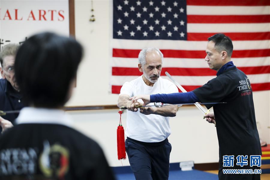 陳思坦在位于美國紐約長島的思坦太極武術(shù)中心帶學(xué)員練習(xí)太極劍(11月20日攝)。11月的紐約已進入初冬,位于美國紐約長島的思坦太極武術(shù)中心依然一片紅火景象,學(xué)員們從5歲的孩童到80多歲的老人,操練著太極拳、太極劍、長拳等武術(shù)招式。這里的主人陳思坦、林旭夫婦,也從早忙到晚,精心指導(dǎo)每一位學(xué)員的一招一式。6歲習(xí)武,22歲成為中國全國冠軍,26歲獲得首個世界冠軍……直到30歲退役,陳思坦在運動員生涯中曾獲得過32次國內(nèi)外各類武術(shù)大賽冠軍。36歲那年,懷著以太極拳和中國武術(shù)為媒介向世界推廣中國文化的夢想,陳思坦到美國紐約尋找新的舞臺。經(jīng)過十多年的艱苦打拼,陳思坦夫婦目前在紐約長島、法拉盛和曼哈頓都開設(shè)了長期的課程,思坦太極注冊在編的各個年齡段的學(xué)員近千人,有些“高徒”現(xiàn)在自己也開班授課,將太極推向更多地方。陳思坦夫婦現(xiàn)在思考更多的是如何將太極和武術(shù)推廣給更多的美國人,并讓他們理解其中蘊含的平衡、和諧的中國文化理念。他們創(chuàng)辦了紐約太極健身氣功活動日,在各類學(xué)校和社區(qū)開設(shè)太極或者武術(shù)課程,并利用美國的亞太裔文化月和多元文化節(jié)舉行武術(shù)和太極表演和體驗課程,讓更多美國人親眼看到、親身體會中國武術(shù)的魅力。從2011年起,他們還參與創(chuàng)辦了紐約太極大賽,如今已舉行九屆,吸引了美國、加拿大和中國國內(nèi)的隊伍參賽,影響力逐漸擴大。新華社記者王迎攝