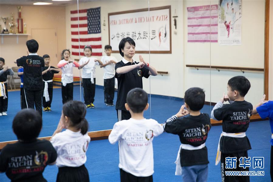 陳思坦的夫人林旭在位于美國紐約長島的思坦太極武術(shù)中心指導(dǎo)小學(xué)員練習(xí)武術(shù)(11月20日攝)。11月的紐約已進入初冬,位于美國紐約長島的思坦太極武術(shù)中心依然一片紅火景象,學(xué)員們從5歲的孩童到80多歲的老人,操練著太極拳、太極劍、長拳等武術(shù)招式。這里的主人陳思坦、林旭夫婦,也從早忙到晚,精心指導(dǎo)每一位學(xué)員的一招一式。6歲習(xí)武,22歲成為中國全國冠軍,26歲獲得首個世界冠軍……直到30歲退役,陳思坦在運動員生涯中曾獲得過32次國內(nèi)外各類武術(shù)大賽冠軍。36歲那年,懷著以太極拳和中國武術(shù)為媒介向世界推廣中國文化的夢想,陳思坦到美國紐約尋找新的舞臺。經(jīng)過十多年的艱苦打拼,陳思坦夫婦目前在紐約長島、法拉盛和曼哈頓都開設(shè)了長期的課程,思坦太極注冊在編的各個年齡段的學(xué)員近千人,有些“高徒”現(xiàn)在自己也開班授課,將太極推向更多地方。陳思坦夫婦現(xiàn)在思考更多的是如何將太極和武術(shù)推廣給更多的美國人,并讓他們理解其中蘊含的平衡、和諧的中國文化理念。他們創(chuàng)辦了紐約太極健身氣功活動日,在各類學(xué)校和社區(qū)開設(shè)太極或者武術(shù)課程,并利用美國的亞太裔文化月和多元文化節(jié)舉行武術(shù)和太極表演和體驗課程,讓更多美國人親眼看到、親身體會中國武術(shù)的魅力。從2011年起,他們還參與創(chuàng)辦了紐約太極大賽,如今已舉行九屆,吸引了美國、加拿大和中國國內(nèi)的隊伍參賽,影響力逐漸擴大。新華社記者王迎攝