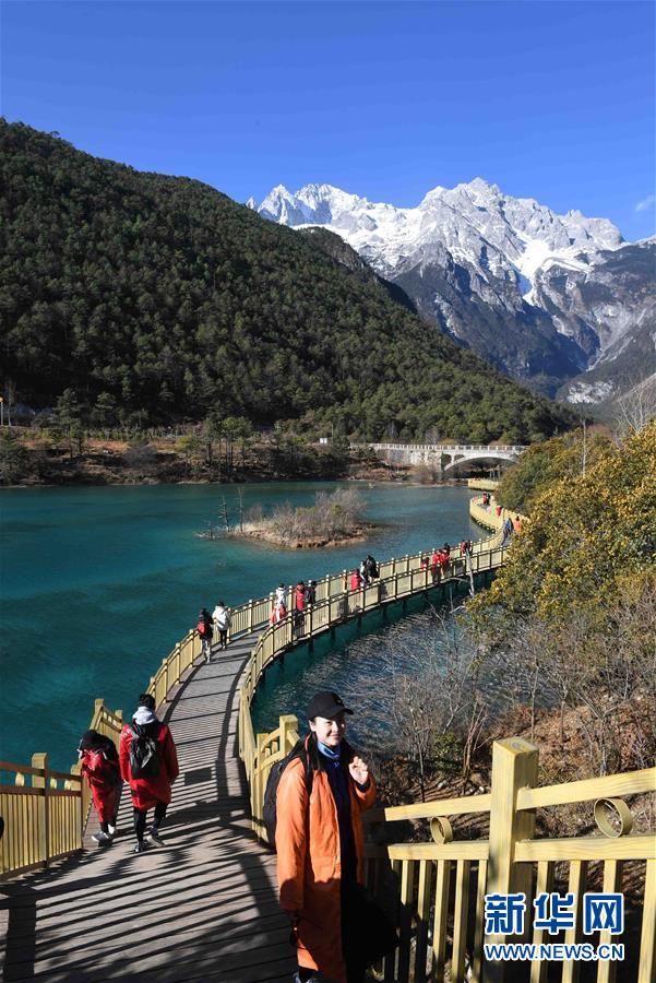 初冬的云南省麗江玉龍雪山景色秀美,吸引游客前來觀光。