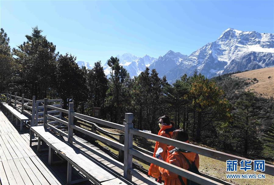 初冬的云南省麗江玉龍雪山景色秀美,吸引游客前來(lái)觀光。