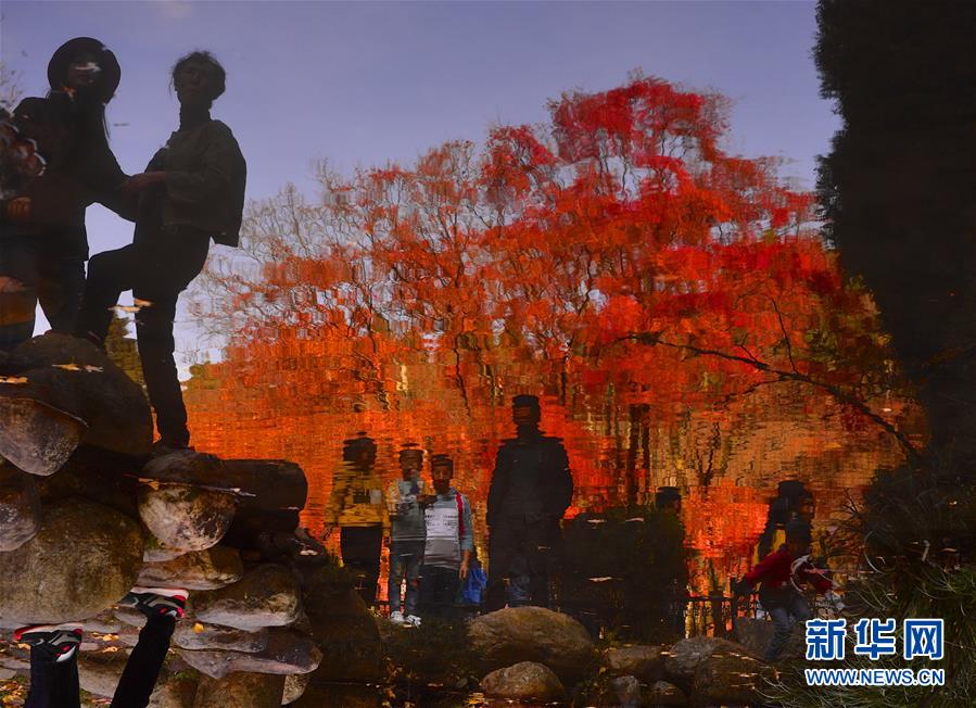 11月17日,游客在廬山植物園內(nèi)游玩(圖片翻轉(zhuǎn)180度)。新華社記者張浩波攝