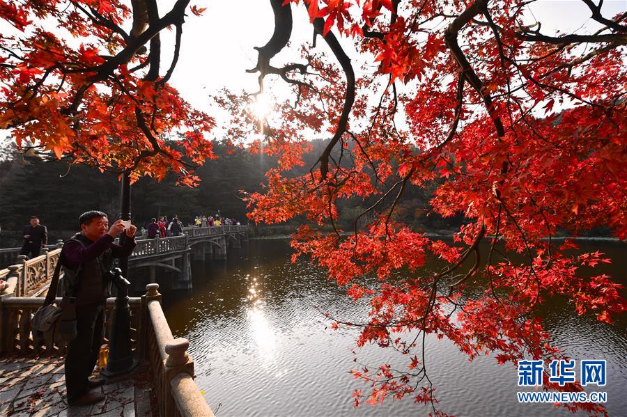 11月17日,游客在廬山如琴湖邊游玩。初冬時(shí)節(jié),江西廬山風(fēng)景區(qū)層林盡染,火紅的楓葉吸引眾多游客前來參觀,令人流連忘返。新華社記者胡晨歡攝