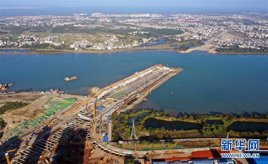 正在施工的??谖拿鳀|越江通道項(xiàng)目(12月14日無人機(jī)拍攝)。 新華社記者 郭程 攝