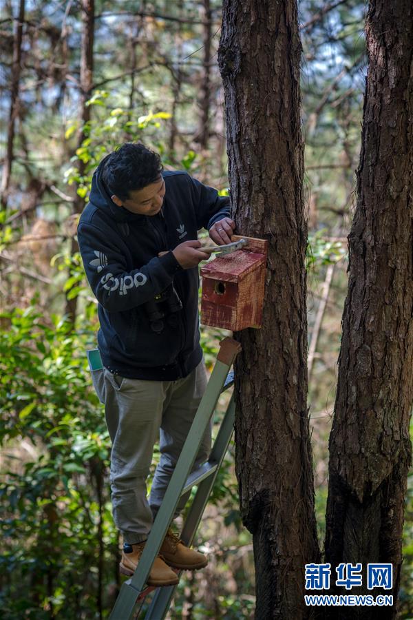 羅康在哀牢山的松樹林里查看上一批人工巢箱的鳥類入住情況(12月12日攝)。 31歲的羅康是云南省瀾滄縣人,從事鳥類生態(tài)學(xué)研究已有8年時間。作為中科院鳥類繁殖學(xué)的在讀博士,羅康離開城市,一頭扎進(jìn)哀牢山深處,以森林為家,與鳥兒為伴。 羅康在研究過程中發(fā)現(xiàn),由于松林內(nèi)天然樹洞很少,導(dǎo)致食蟲鳥類(主要為洞巢鳥)的繁衍與生存質(zhì)量受到較大影響。查閱大量資料后,他決定學(xué)習(xí)西方國家應(yīng)用比較廣泛、已有100多年歷史的人工巢箱,為這些鳥兒搭建“別墅”。 目前,羅康已安置人工鳥巢500余個,共有遠(yuǎn)東山雀、綠背山雀、黃頰山雀等7種鳥類入住,總體入住率約25%。他還在部分人工巢箱里裝上攝像頭,用于研究鳥類的生活習(xí)性。 “通過對人工鳥巢里的視頻錄像進(jìn)行分析,我們發(fā)現(xiàn)入住鳥類以松毛蟲喂食幼鳥的比例非常高。”羅康表示,安置人工鳥巢不僅能幫助鳥類在森林中安家落戶、繁衍生息,也能有效防治森林病蟲害。明年一月底前,他將再安置500個人工巢箱。 新華社記者 胡超 攝