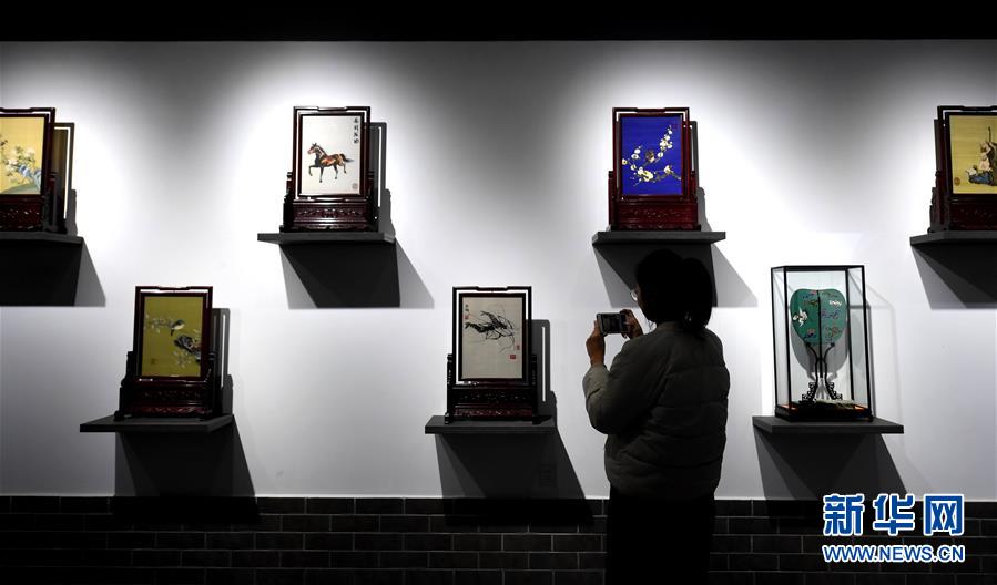 12月14日,游客在河北定州緙絲傳習(xí)基地參觀緙絲作品。 新華社記者 王曉 攝