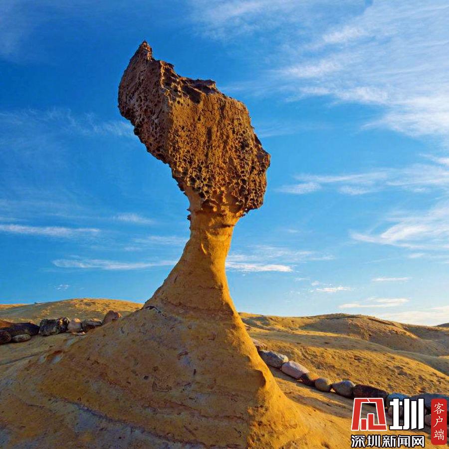 野柳地質(zhì)公園(Yehliu Geopark),位于臺灣新北市萬里區(qū),野柳是突出海面的岬角(大屯山系),長約1700公尺,由于海蝕風(fēng)化及地殼運(yùn)動等作用,造就了海蝕洞溝、蜂窩石、燭狀石、豆腐石、蕈狀巖、壺穴、溶蝕盤等綿延羅列的奇特景觀。孫遜攝