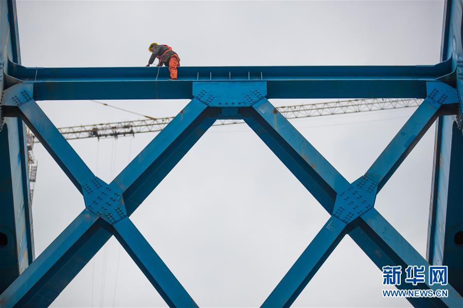 3月14日,施工人員在鴨池河特大橋上拆除輔助設(shè)施。新華社記者劉續(xù)攝