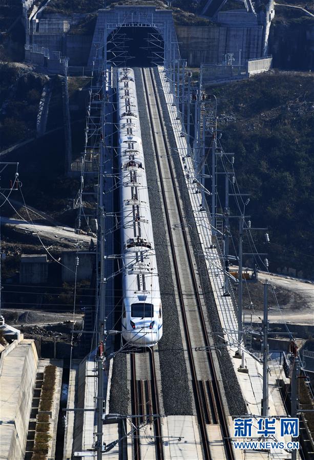 12月16日,一列動(dòng)車組列車從成貴高鐵西溪河大橋上駛過(guò)。新華社記者楊文斌攝