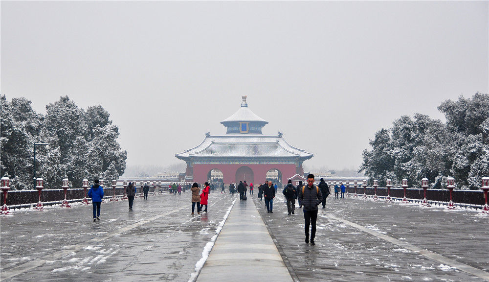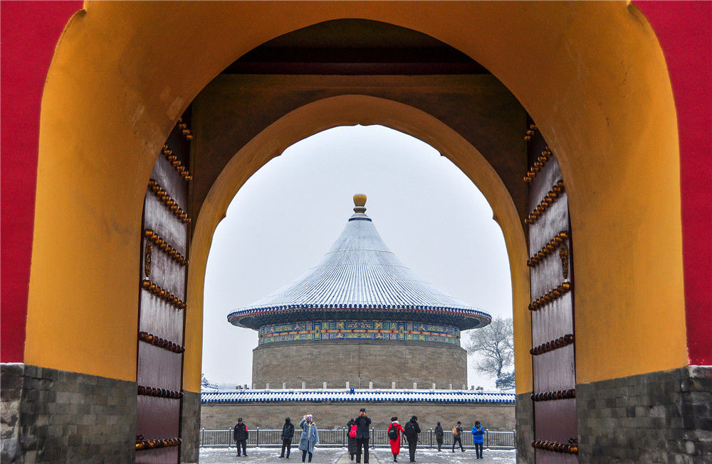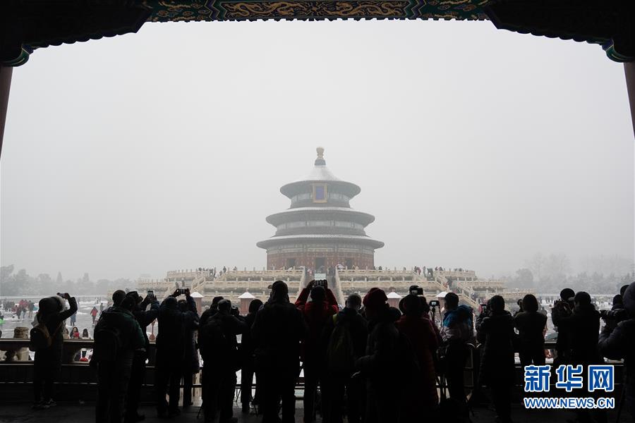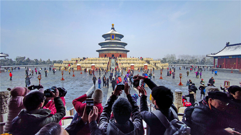 2019年11月30日,北京,初雪過(guò)后,天壇公園銀裝素裹,白雪古建相互映襯,景色迷人。天壇公園里觀雪賞景的市民絡(luò)繹不絕。喬健/千龍圖像/視覺中國(guó)