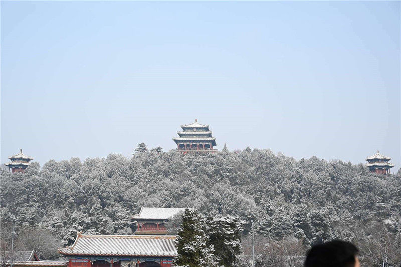 12月16日,人們?cè)谔靿珗@觀賞雪景。當(dāng)日,北京迎來(lái)降雪天氣。新華社記者鞠煥宗攝