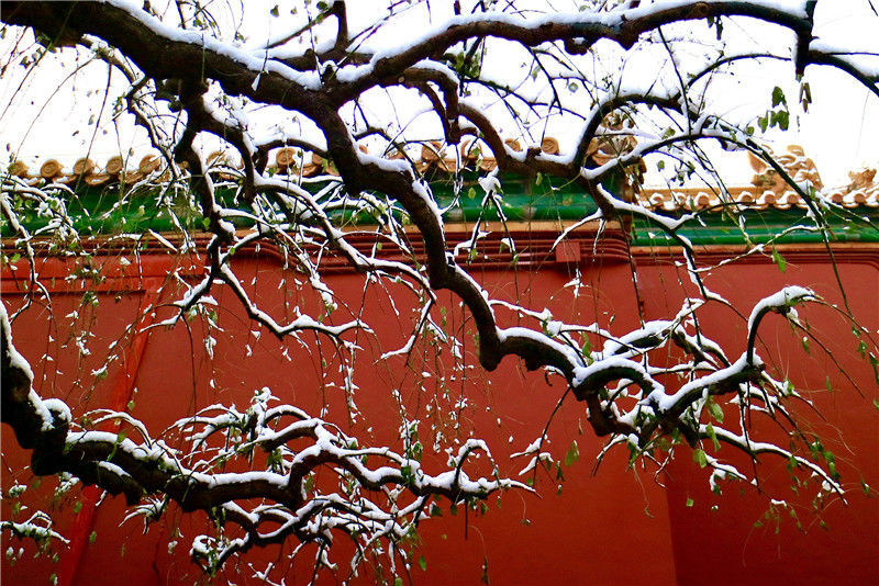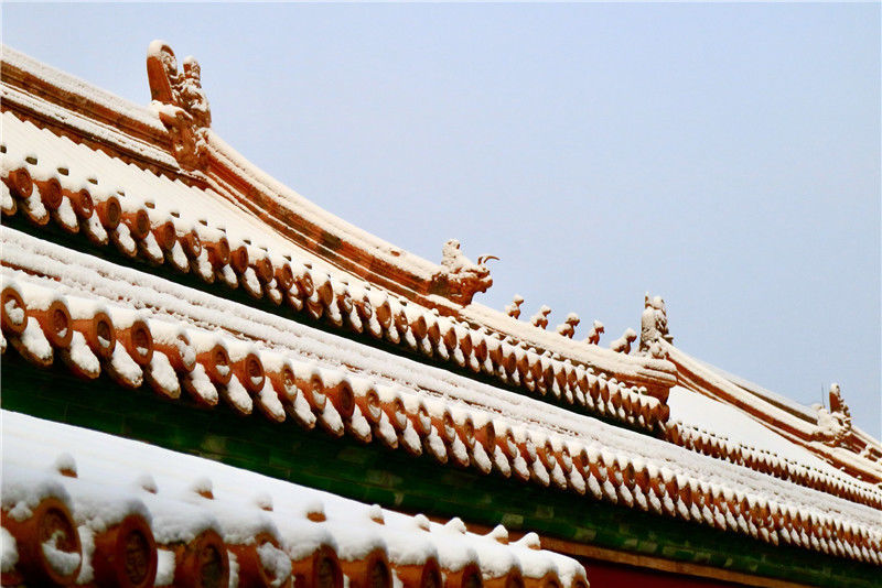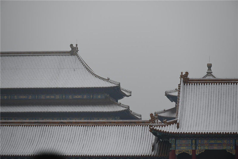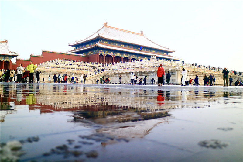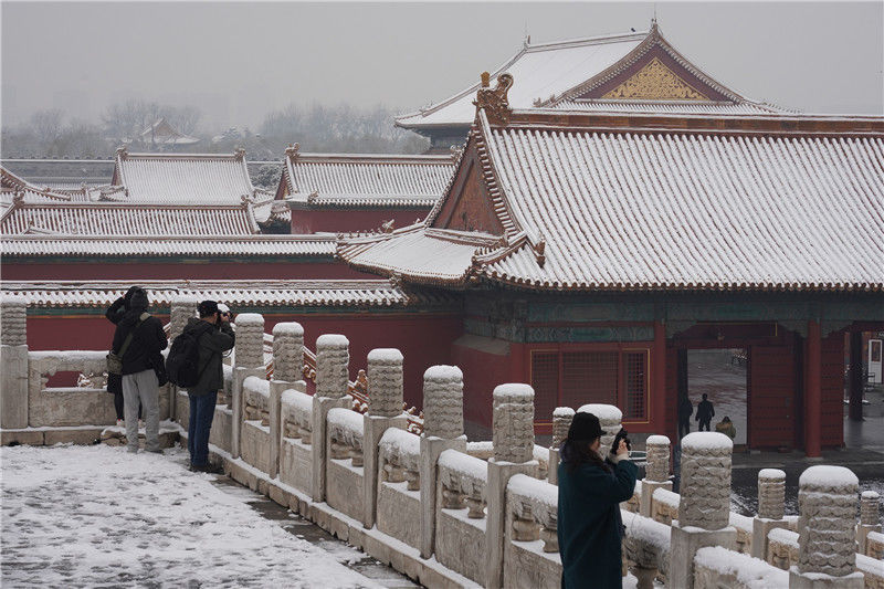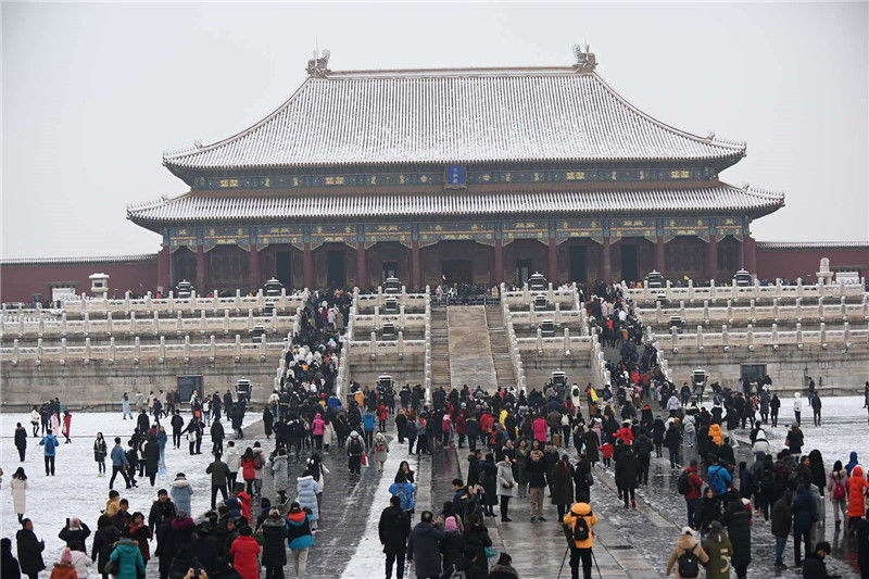 初雪后故宮銀裝素裹游客排隊(duì)打卡