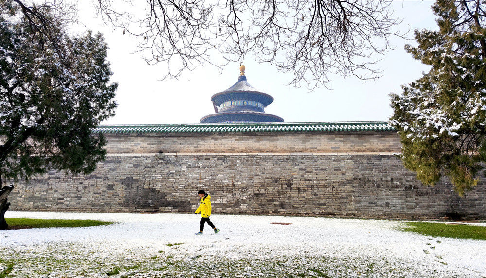 2019年11月30日,民眾在北京天壇公園內(nèi)賞雪。29日,北京迎來(lái)2019年冬季初雪。富田(攝影部)/中新社/視覺中國(guó)