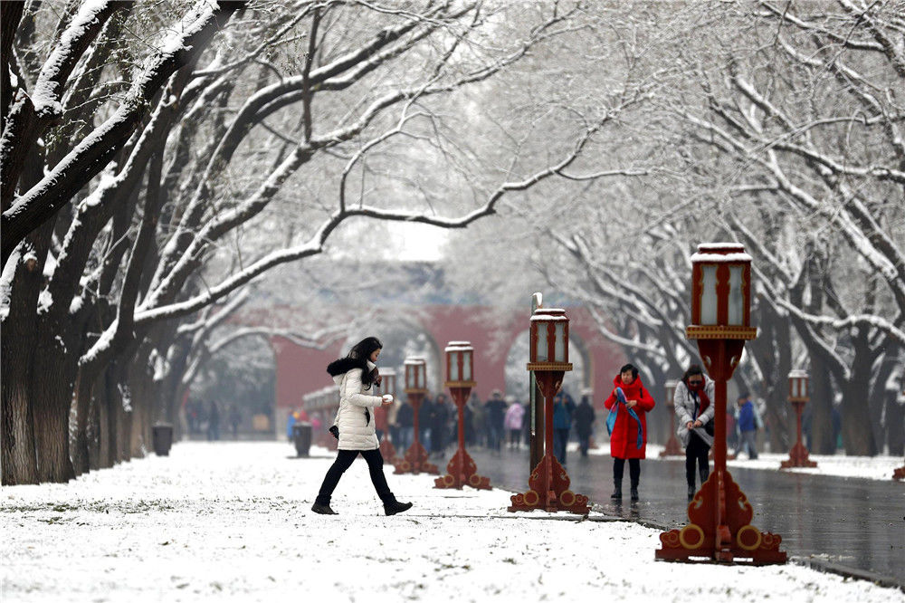 2019年11月30日,北京,天壇公園里觀雪賞景的市民絡(luò)繹不絕。喬?。垐D像/視覺中國(guó)