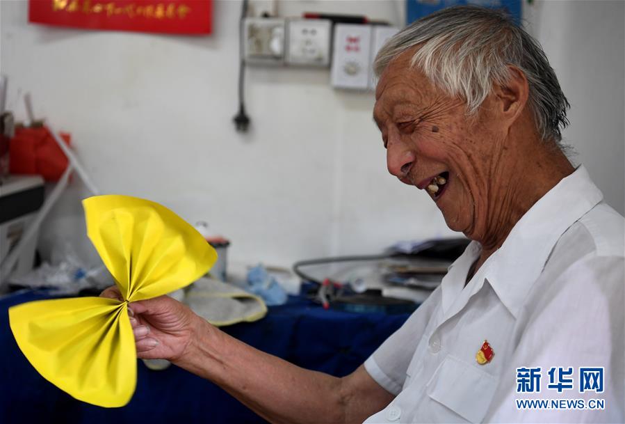 7月31日,葉連平在“留守未成年人之家”教室里欣賞學(xué)生剛剛送給自己的折紙禮物。92歲的退休教師葉連平生活在安徽省和縣烏江鎮(zhèn)卜陳村,村里的年輕人大多外出工作,留下的多是老人和孩子,家長(zhǎng)普遍沒有能力輔導(dǎo)孩子學(xué)習(xí)。2000年,原本是老師的葉連平?jīng)Q定創(chuàng)辦“留守未成年人之家”,為孩子們免費(fèi)補(bǔ)習(xí)英語(yǔ)。19年來(lái),葉連平幫助過(guò)的孩子超過(guò)1000名。新華社記者劉軍喜攝