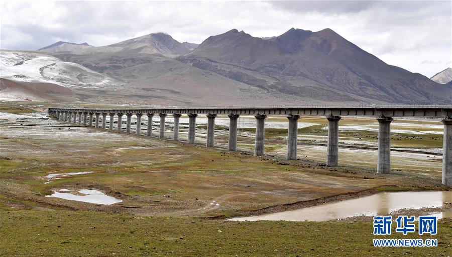 這是穿過(guò)一片濕地的青藏鐵路(6月10日攝)。新華社記者覺(jué)果攝