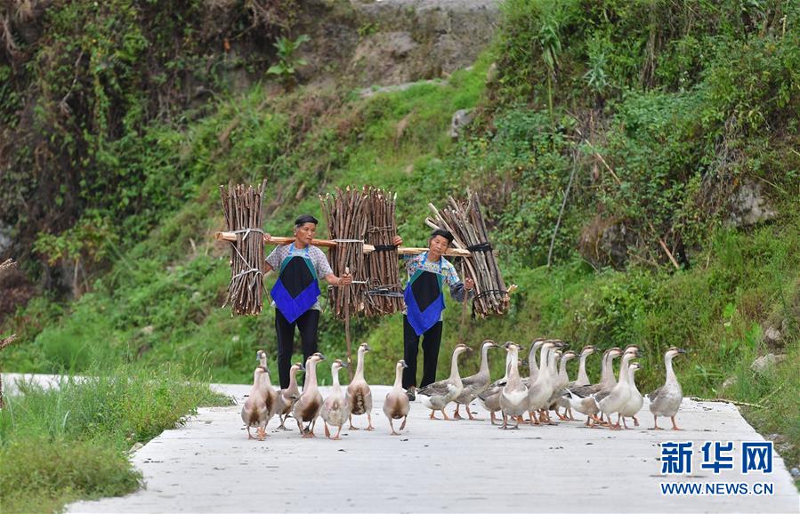 烏英苗寨的老人勞作歸來(9月2日攝)。新華社記者黃孝邦攝