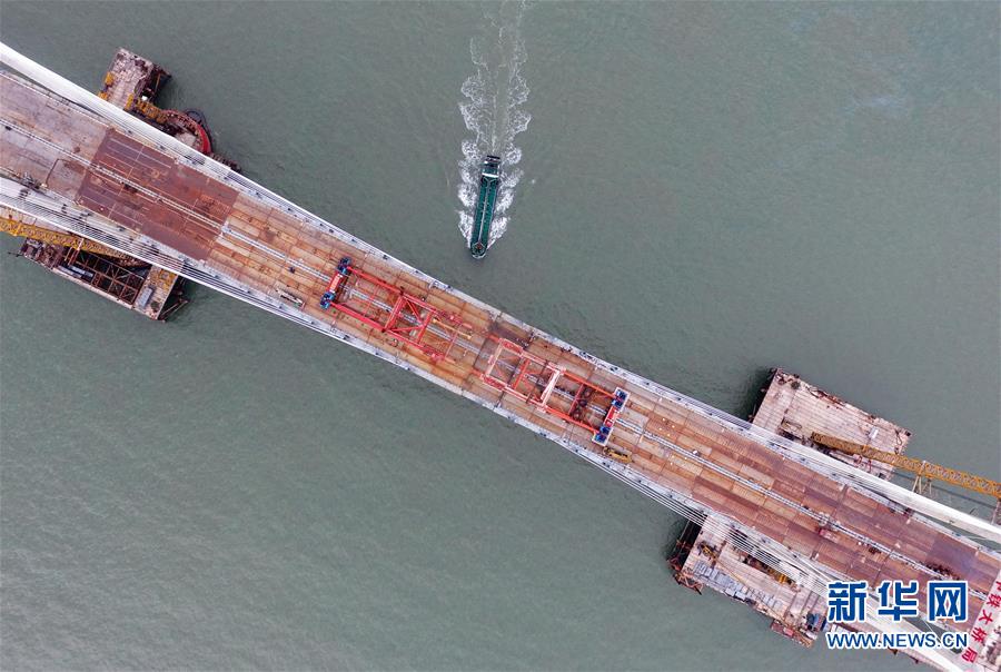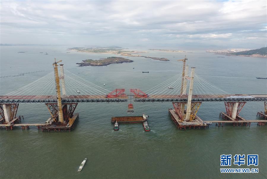9月21日,平潭海峽公鐵大橋鼓嶼門航道橋的鋼桁梁在吊裝中(無(wú)人機(jī)拍攝)。9月25日上午,隨著一段長(zhǎng)17米、重473噸的鋼桁梁被精確固定到位,總長(zhǎng)16.34公里的平潭海峽公鐵大橋合龍貫通。平潭海峽公鐵大橋是福州至平潭鐵路控制性工程,也是“十三五”規(guī)劃中北京至臺(tái)灣高鐵的先期工程。大橋起于福州市長(zhǎng)樂(lè)區(qū),“踏”過(guò)四座小島后抵達(dá)中國(guó)第五大島平潭,上層設(shè)計(jì)為時(shí)速100公里的六車道高速公路,下層為設(shè)計(jì)時(shí)速200公里的高鐵。據(jù)福建福平鐵路公司介紹,大橋計(jì)劃2020年正式通車。在六年建設(shè)過(guò)程中,平潭海峽公鐵大橋所應(yīng)用研發(fā)的多項(xiàng)技術(shù)、裝備創(chuàng)下國(guó)內(nèi)外紀(jì)錄。新華社記者林善傳攝