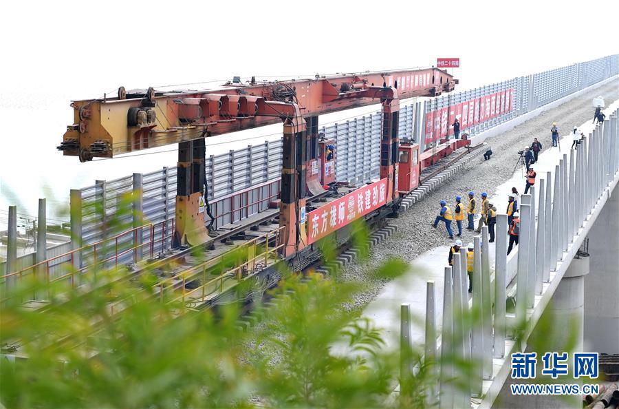 12月22日,中鐵二十四局工作人員在平潭海峽公鐵大橋鋪軌施工現(xiàn)場進(jìn)行鋪軌作業(yè)。新華社記者林善傳攝