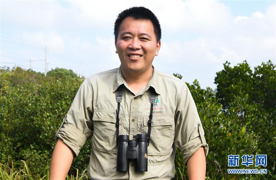 海南東寨港國家級自然保護區(qū)林業(yè)工程師馮爾輝(12月18日攝)。 馮爾輝2009年大學畢業(yè)后來到保護區(qū)工作,小時候他家就住在紅樹林邊上,他從小和紅樹林打交道,喜歡動植物和鳥類。外貿(mào)專業(yè)畢業(yè)的他邊工作邊學習,目前主要從事鳥類監(jiān)測、紅樹林保育、自然教育等工作?!凹t樹林看著我長大”,馮爾輝說,濕地保護的工作非常有意義。 新華社記者楊冠宇攝