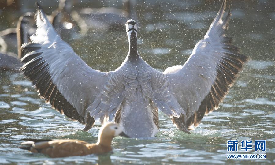 11月21日,候鳥在拉薩龍王潭公園水中嬉戲。新華社記者普布扎西攝