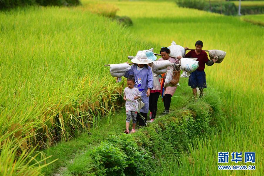 烏英苗寨秋收歸來的人們(9月2日攝)。新華社記者黃孝邦攝