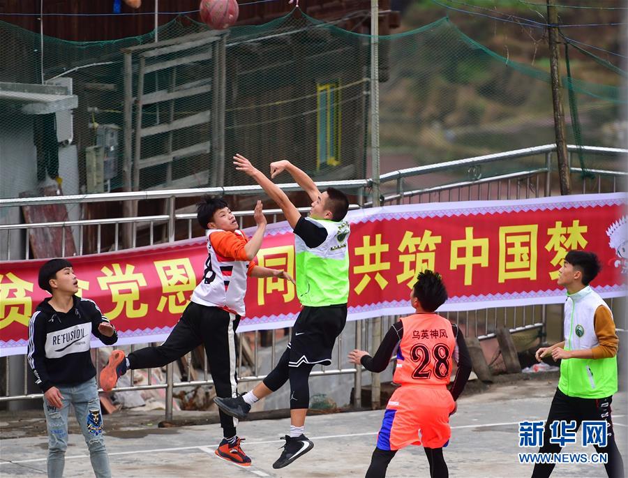 12月26日,澳門青年藝能志愿工作會的義教老師李嘉堯(右三)在籃球比賽中投籃。 新華社記者 黃孝邦 攝