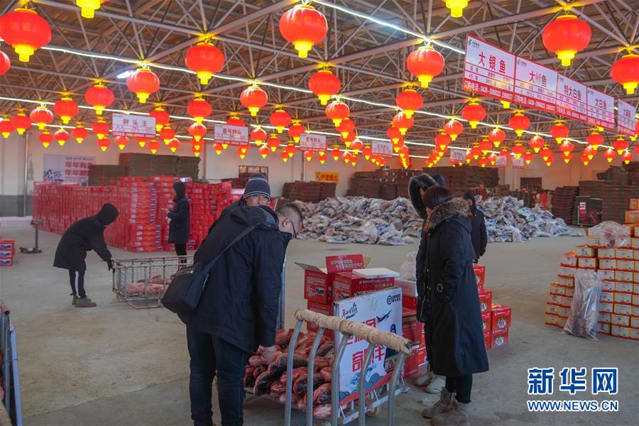 12月27日,在查干湖漁場(chǎng)超市,消費(fèi)者選購查干湖魚。新華社記者張楠攝