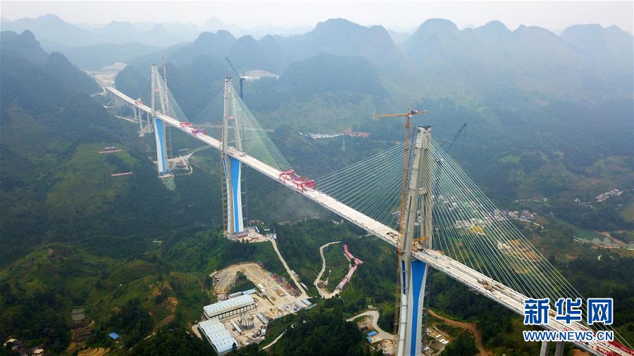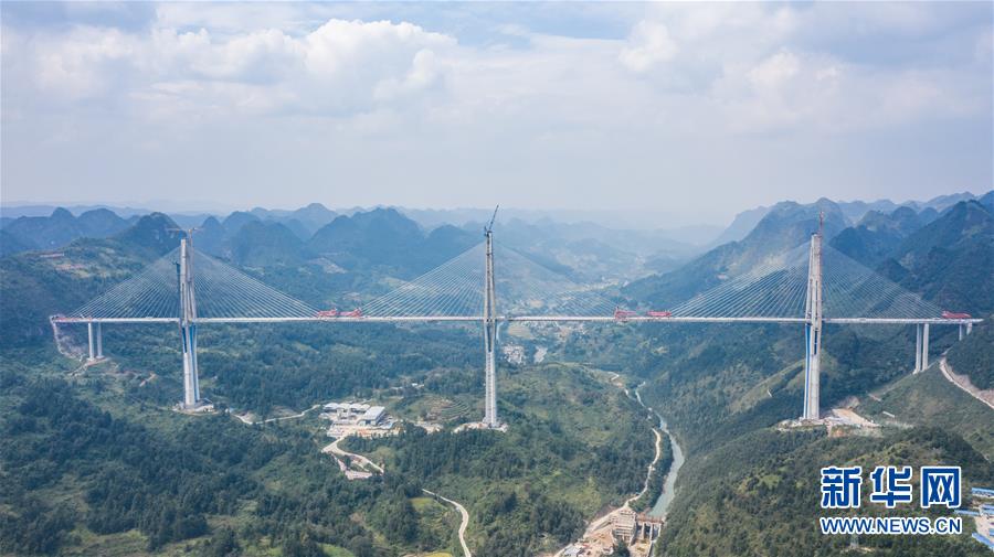 這是正在澆筑最后一方混凝土的平塘特大橋(9月26日無(wú)人機(jī)拍攝)。新華社記者陶亮攝