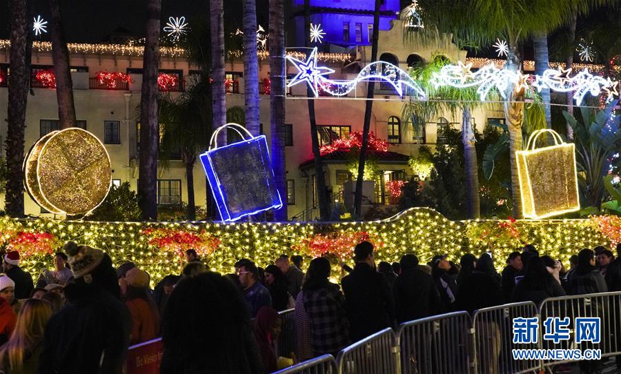 12月29日,人們在美國加利福尼亞州里弗賽德燈光節(jié)上欣賞彩燈。第27屆里弗賽德燈光節(jié)流光璀璨,洋溢著濃厚的新年氣氛,吸引眾多游客前來觀看。 新華社記者李穎攝