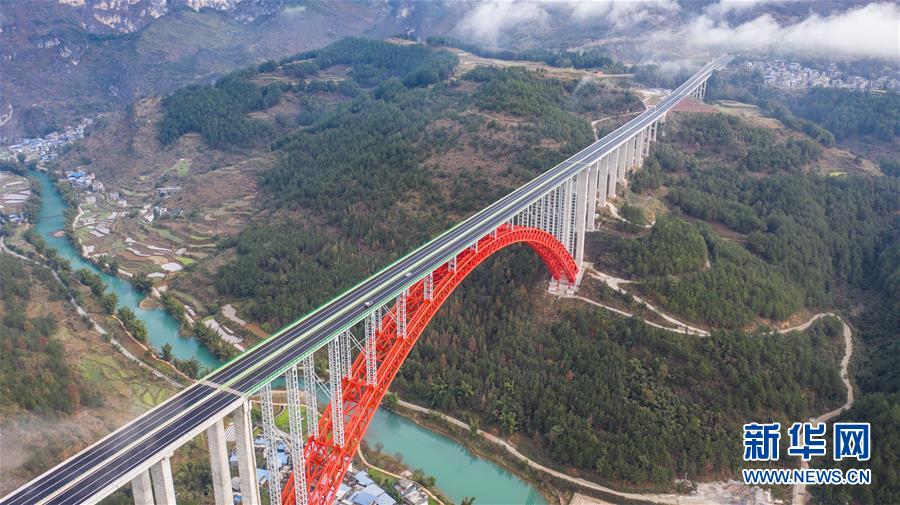 這是中冶集團承建的紫望高速火花特大橋(無人機照片,1月1日攝)。新華社記者陶亮攝