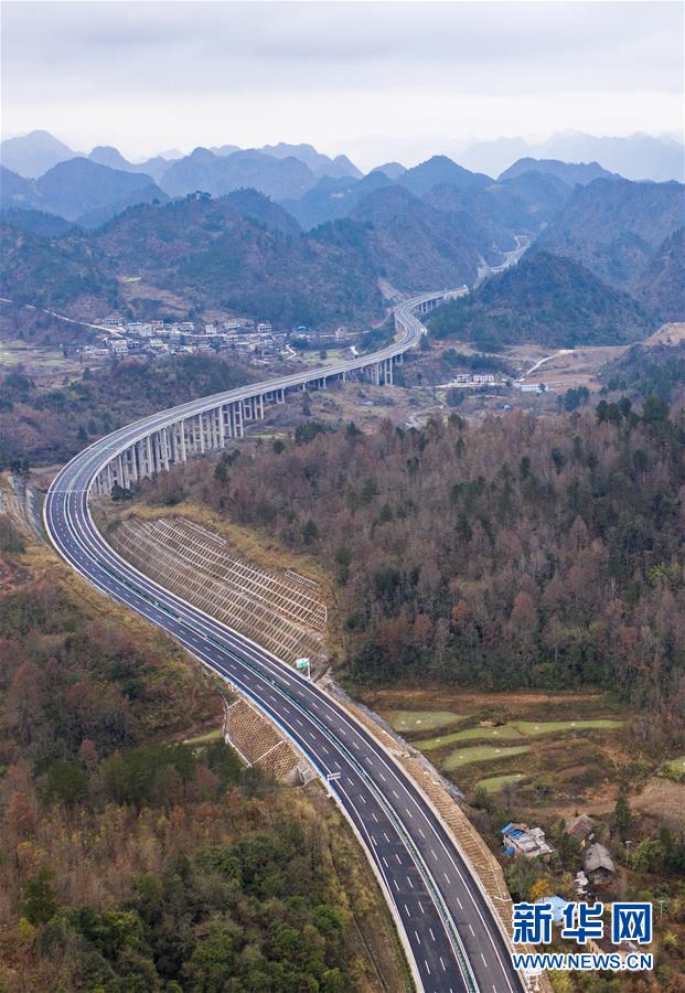 這是紫望高速紫云南至邊饒段(無人機照片,1月1日攝)。新華社記者陶亮攝