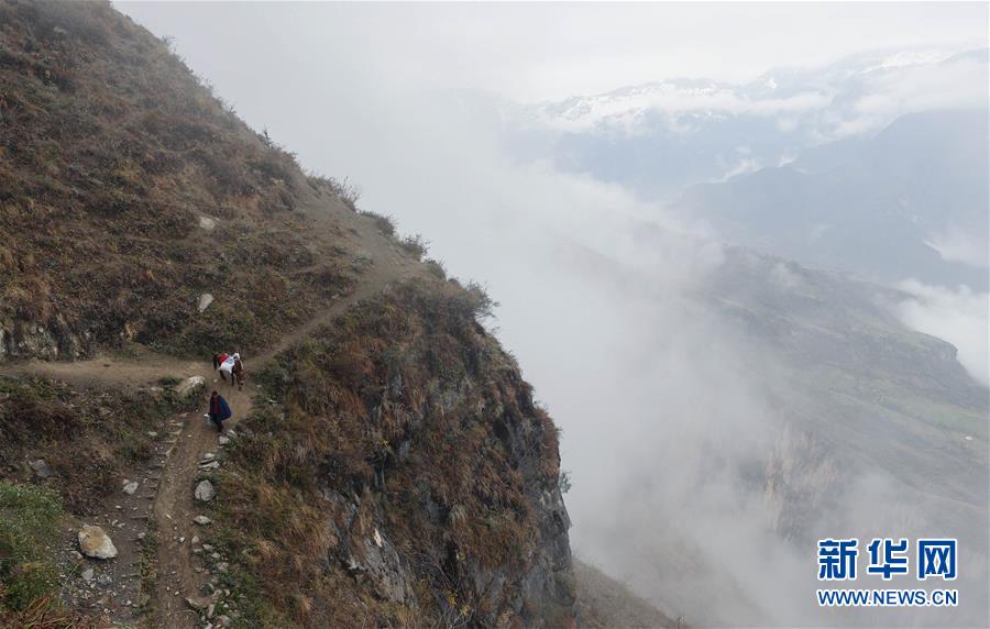 阿布洛哈村三面環(huán)山,幾乎全是懸崖絕壁;一面依水,金沙江支流西溪河流淌而過。以前,村民們進(jìn)出村需攀爬懸崖上鑿出來的一條小路;村里的物資主要靠馬馱人背,走一趟要3個(gè)多小時(shí)。交通成為村里脫貧攻堅(jiān)最大的“硬骨頭”,全村65戶253人,目前仍有建檔立卡貧困戶29戶182人。為打通交通瓶頸,當(dāng)?shù)卣疀Q定修建一條3.8公里的四級通村公路。今年11月,工程在進(jìn)行到“最后一公里”時(shí),施工隊(duì)伍發(fā)現(xiàn)懸崖兩側(cè)多為碎屑巖、變質(zhì)巖等,原本規(guī)劃修建的C型隧道很難推進(jìn)。專家決定修建懸崖擺渡車,確保村民年底前能順利出行;同時(shí),改C型隧道為全隧道,繼續(xù)修建通村公路,項(xiàng)目預(yù)計(jì)2020年4月完工。新華社記者江宏景攝