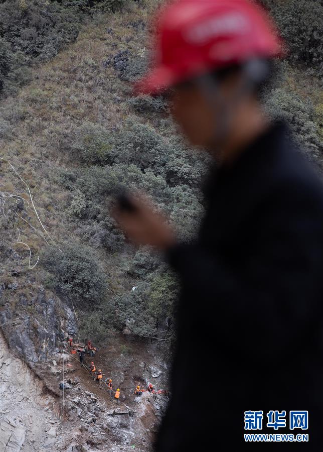 阿布洛哈村通村公路施工遇到陡崖夾溝地勢,項(xiàng)目進(jìn)程艱難緩慢,四川路橋施工隊(duì)伍開始在峽谷兩邊分頭推進(jìn)(2019年11月20日攝)。新華社記者江宏景攝