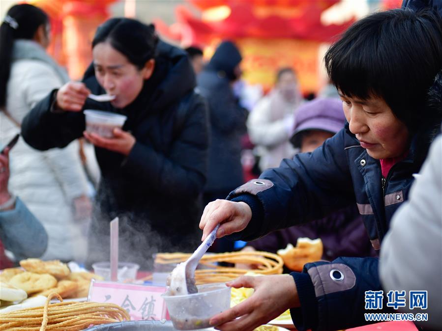 1月2日,兩位市民在閬中古城貢院廣場吃臘八粥。 當(dāng)日是農(nóng)歷臘月初八臘八節(jié),四川閬中古城舉行“萬人同品臘八粥”活動(dòng),當(dāng)?shù)鼐用窈捅姸嘤慰驮谪曉簭V場免費(fèi)享用臘八粥。 新華社記者 江宏景 攝