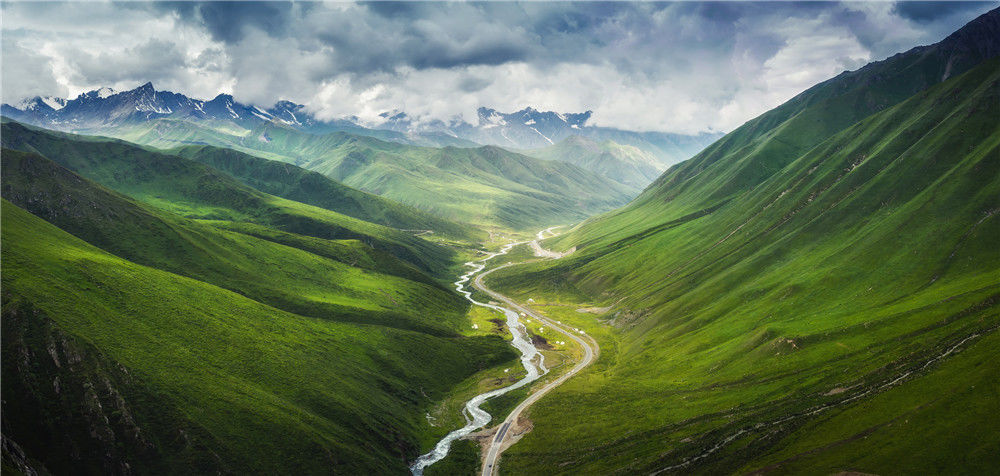 2019年7月10日,新疆獨庫公路蜿蜒在天山山脈的草原山谷中。黃光浩/視覺中國