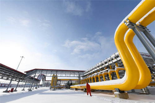 2019年11月19日,在位于黑龍江省黑河市的中俄東線天然氣管道北段黑河首站場(chǎng)區(qū),工作人員從管線旁經(jīng)過。新華社記者王建威攝