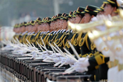 2019年10月1日,慶祝中華人民共和國(guó)成立70周年大會(huì)在北京天安門廣場(chǎng)隆重舉行。這是聯(lián)合軍樂(lè)團(tuán)在演奏。新華社記者姚大偉攝