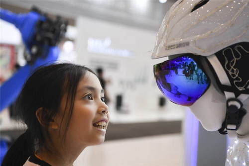 2019年8月25日,一名小朋友在2019智博會(huì)主會(huì)場(chǎng)重慶國(guó)際博覽中心參觀。新華社記者王全超攝