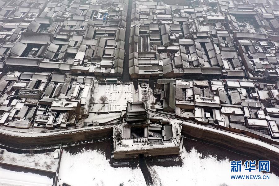 當(dāng)日,山西省平遙縣迎來降雪,雪中的平遙古城銀裝素裹,美景如畫。平遙古城是目前中國保存最完整的古代縣級城池之一,1997年被列入世界文化遺產(chǎn)名錄。