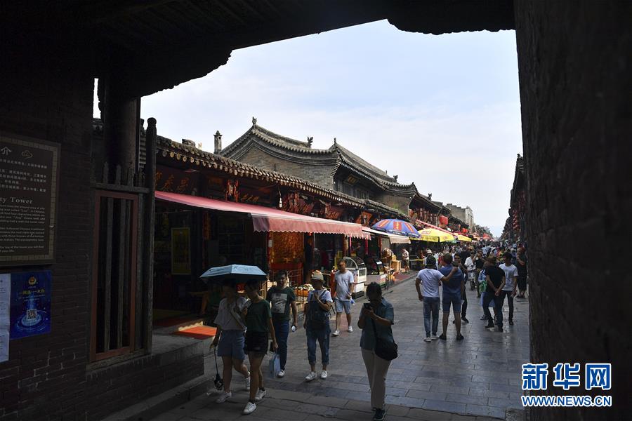 游客在山西平遙古城南大街游覽(7月19日攝)。