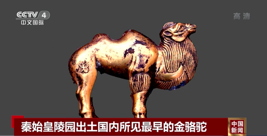 出土的金駱駝是目前國內(nèi)所見最早的單體金駱駝。這些出土器物不僅為漢代絲綢之路開通以前,中西文化交流提供了重要依據(jù),也為秦代政治、經(jīng)濟(jì)、軍事、科技、文化等研究提供了重要的實(shí)物材料。