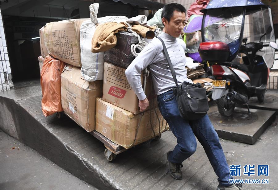 冉光輝用小板車載著貨物,前往發(fā)貨地點(1月5日攝)。新華社記者王全超攝