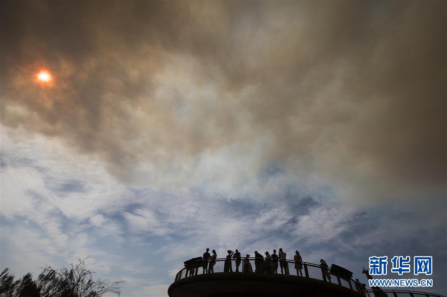 2019年12月21日,在澳大利亞新南威爾士州藍山地區(qū),市民遠遠觀察山火。新華社記者白雪飛攝
