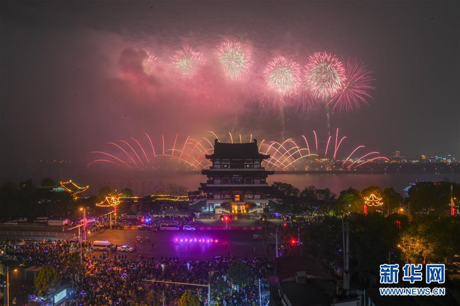 2020年1月1日晚,市民和游客在湖南長(zhǎng)沙杜甫江閣前觀看焰火晚會(huì)。 當(dāng)晚,湖南長(zhǎng)沙在橘子洲舉行音樂焰火晚會(huì)慶祝元旦,吸引眾多市民和游客前往觀看。 新華社記者 陳澤國(guó) 攝