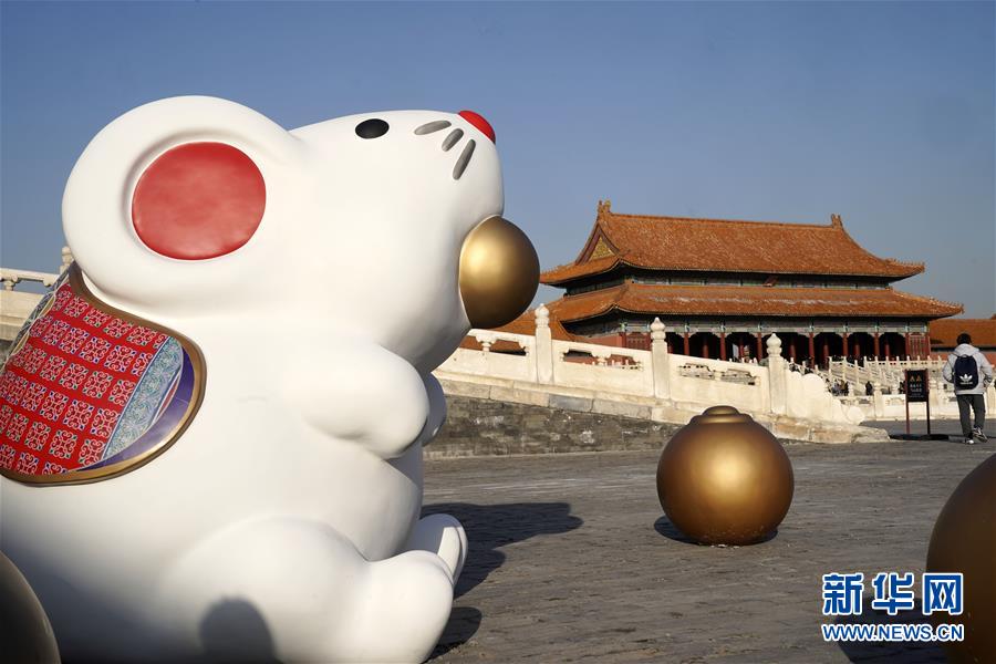 2019年12月27日在北京故宮太和門廣場(chǎng)拍攝的“吐寶鼠”。 由故宮博物院、騰訊出品的視頻節(jié)目《故宮賀歲》將于2020年1月1日正式上線,節(jié)目每周1集,每集時(shí)長(zhǎng)30分鐘,計(jì)劃推出5集。節(jié)目里,主持人將與專家、嘉賓等一起在故宮探尋傳統(tǒng)過大年的習(xí)俗。 新華社記者 金良快 攝