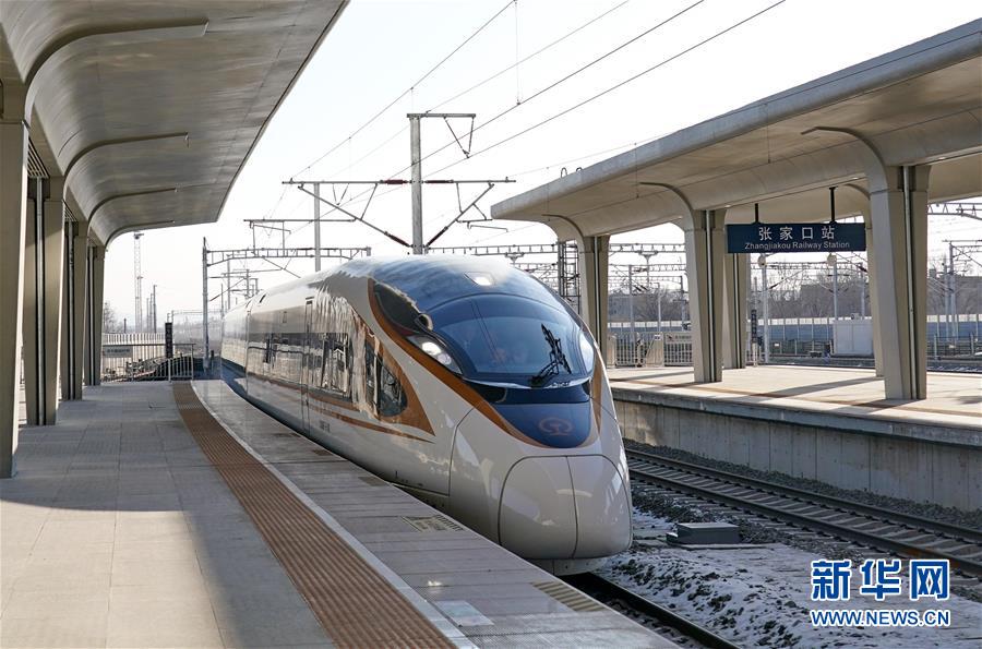 2019年12月30日,G2505次列車駛?cè)刖埜哞F張家口站。 當(dāng)日,北京至張家口高速鐵路開通運(yùn)營(yíng),崇禮鐵路同步通車。 新華社記者 楊世堯 攝