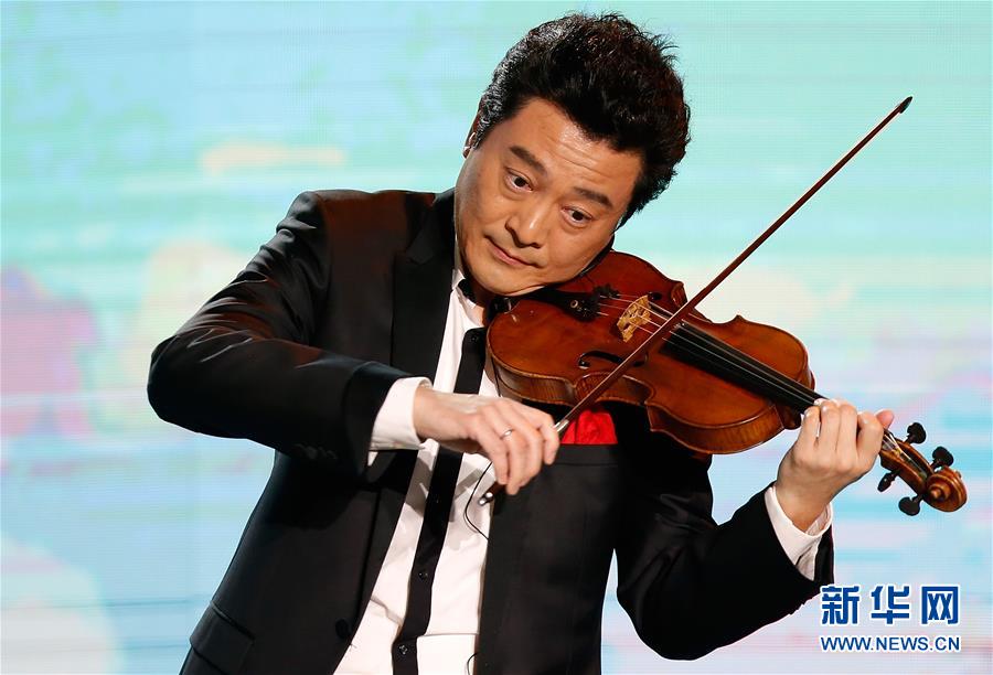1月8日,呂思清在大聯(lián)歡中演奏小提琴。  新華社記者王麗莉攝